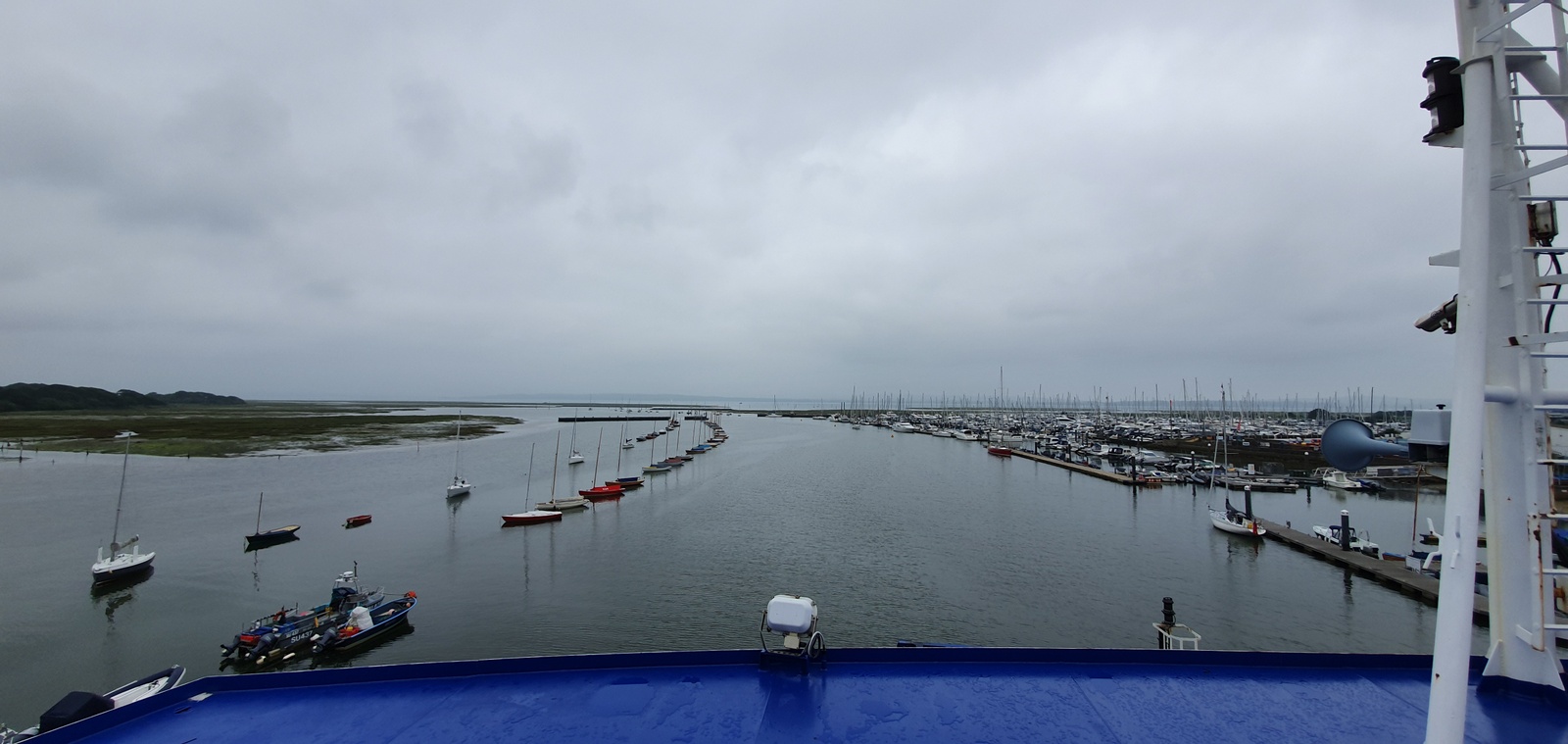 Irgenwie ist die Zeit schneller vorbei gegangen als wir gedacht haben und wir machen uns auf den Weg zur Fähre. Wir sind früher da als für die für 18:05 Uhr gebuchte Rückfahrt nötig. Beim Check In werde ich gefragt, ob ich mitfahren möchte, wieder ohne ein Ticket zu verlangen. Ich bin nicht sicher ob ich das richtig verstanden habe, warum sonst sollte ich wohl hier sein? Um Missverständnisse auszuschließen, sage ich das ich mit der Fähre um 18:05 Uhr fahren möchte. Schließlich werde ich durch gewunken. Erst als ich statt als erster in die Warteschlange für die gebuchte Verbindung, als letzer auf die noch wartende 17:05 Uhr Fähre gewunken werde, wird mir die Frage beim Check In klar. Die wollten wissen, ob ich wirklich noch eine Stunde hier herum stehen wollte oder soft fahren wollte.