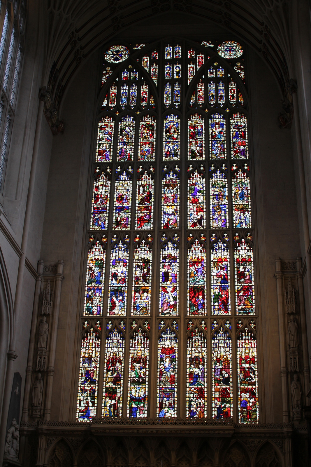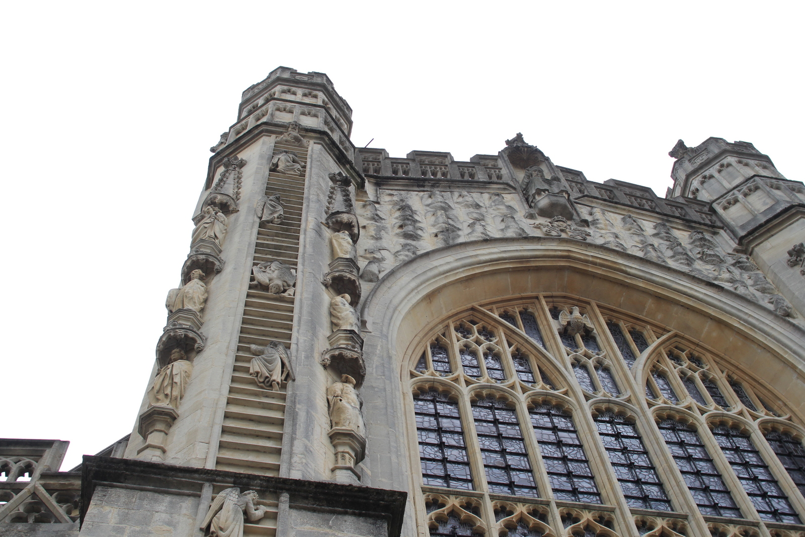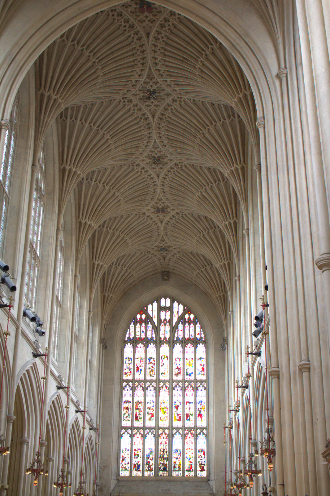 Wir gehen über die Brücke zur Abbey in der Stadtmitte. Dort ist auch das römische Bad, dass der Stadt ihren Namen gab. Die Schlangen davor sind uns aber zu lang und so fangen wir unsere touristischen Tätigkeiten in der Kirche an. Deren Boden wird gerade „renoviert“. Es heißt, dass die Toten hier übereinander bestattet wurden. Abgeschlossen mit den vielen Grabsteinbodenplatten, die fast den ganzen Boden ausfüllen. Diese Art der Bestattung ist aber wohl statisch nicht so günstig und daher ist der Boden an manchen Stellen eingestürzt und mass erneuert werden. Das Hauptschiff ist also der länge nach unterteilt. Die Kirche hat nette Fenster und eine hübsche Decke, die wie Palmblätter geformt ist.