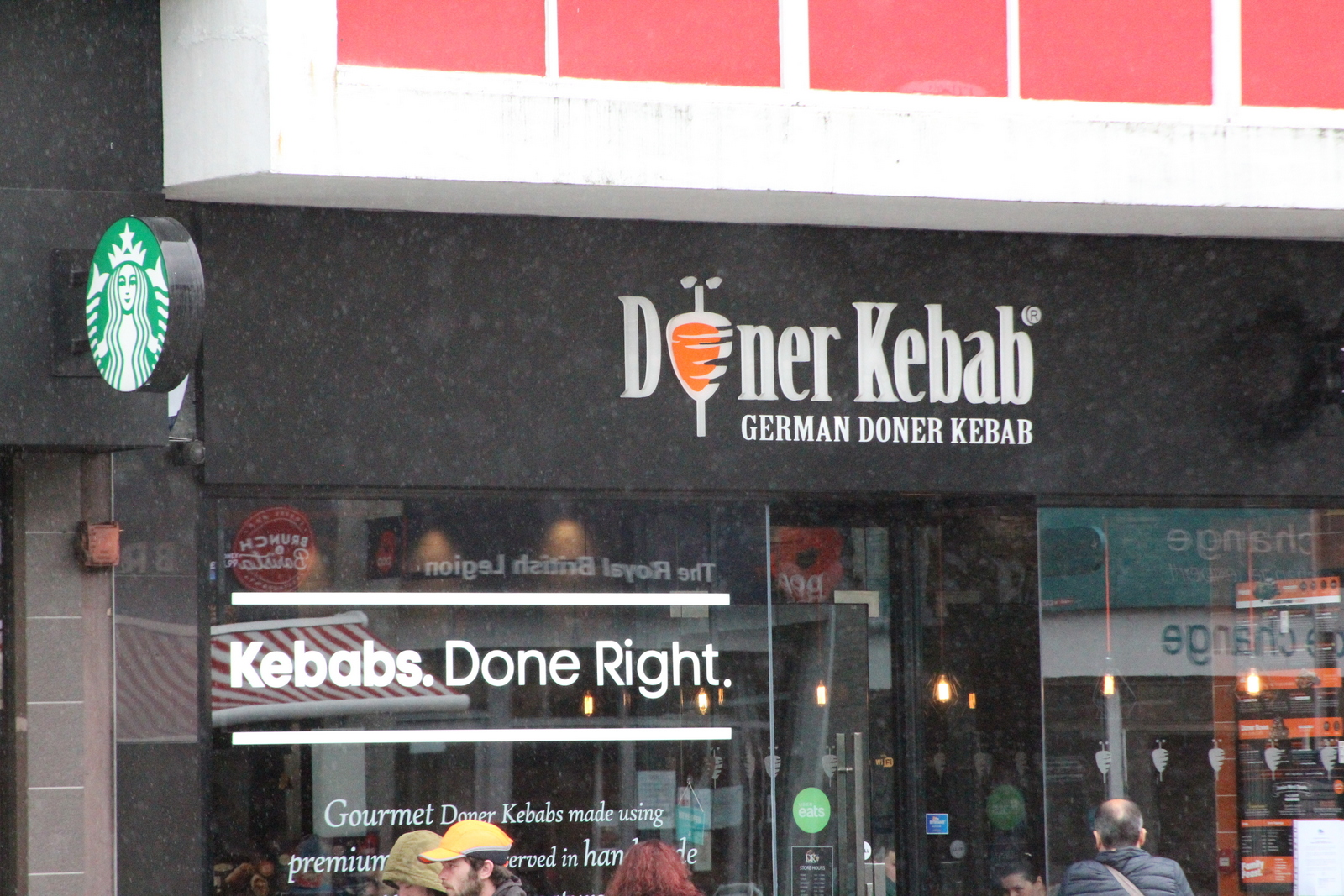 Wir essen etwas und können auf den Bildschirmen die (eine?) Weltmeisterschaft in Cricket verfolgen. Auch nach etwa dreissig Minuten habe ich keine Ahnung, was das Ziel des Spiels sein könnte. Leider hat es mitlerweile richtig zu regnen begonnen. Wir warten etwas, aber der Regen lässt noch nicht nach. Also werden wir auf dem Weg zum Auto ein wenig naß. Aber es ist ja Sommer. Das heisst in England, dass der Regen nicht so kalt ist. Kurz vor dem Parkhaus kommen wir noch an einem Imbiss vorbei, an dem es „German Doner Kebab“ gibt. Wird hoffentlich nicht aus deutschen Spendern gemacht.