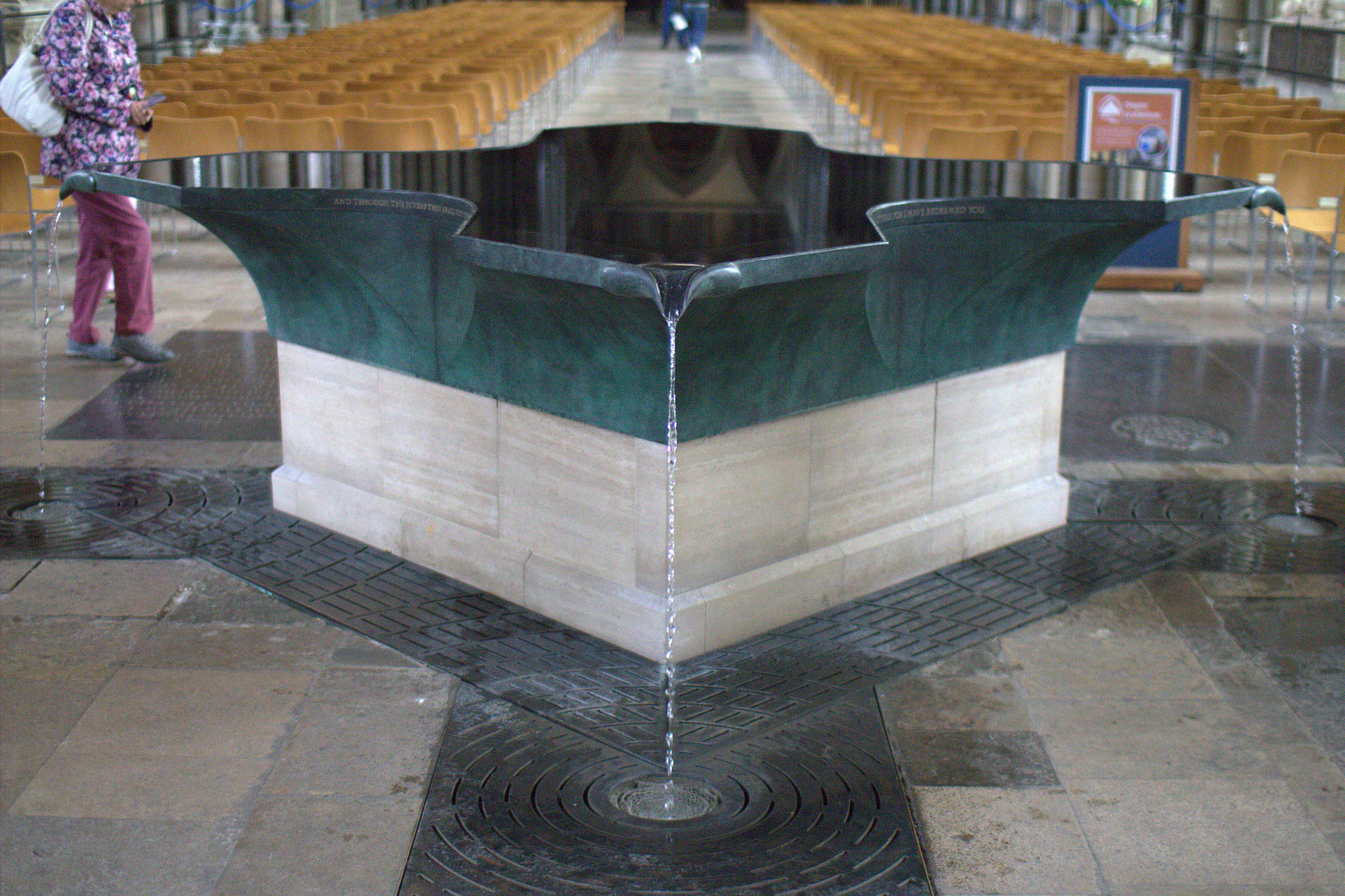 Der Innenraum ist dank der meist klaren Fenster und des hellen Steins recht hell. Das Hauptschiff ist sehr lang und hoch und wirkt riesig, auch wenn man den Kölner Dom als Vergleich heranzieht. Im Hauptschiff steht ein einzigartiges Taufbecken, dass 2008 aufgestellt wurde. Es hat fließendes Wasser, dass stätig an vier Ecken überfließt und im Boden verschwindet. Die Wasseroberfläche schließt mit dem Rand ab, so wie bei einem Infinitypool, und spiegelt die ganze Kirche.