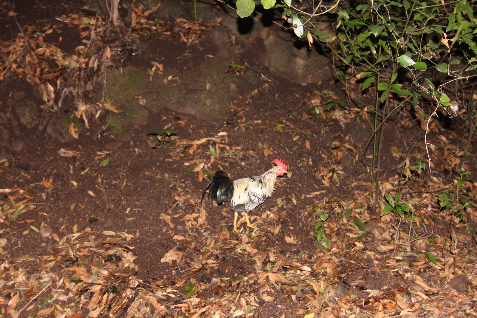 Nach kurzer Zeit komme ich zu einer Betonstraße, die extrem Steil nach unten geht. Vermutlich 20% Gefälle, vielleicht sogar mehr. Ist nach einer halben Stunde kein großes Vergnügen mehr für die Knie. Dann wird es aber interessanter. Zuerst geht es durch ein kleines Dorf, dann durch eine Bananenplantage. Ich kann die kleinen, grünen Bananen an den Bäumen sehen. Die steile Straße geht in einen Wanderweg über. Wieder der Camino Real, der Königsweg. Als ich im Schlamm fast ausrutsche und danach Angst habe, dass mir die von den Felsvorsprüngen herabhängenden Dornenranken, die dünne Regenjacke zerreißen, fange ich an mich zu fragen, wie wohl der Weg für die Nicht-Könige aussehen muss.