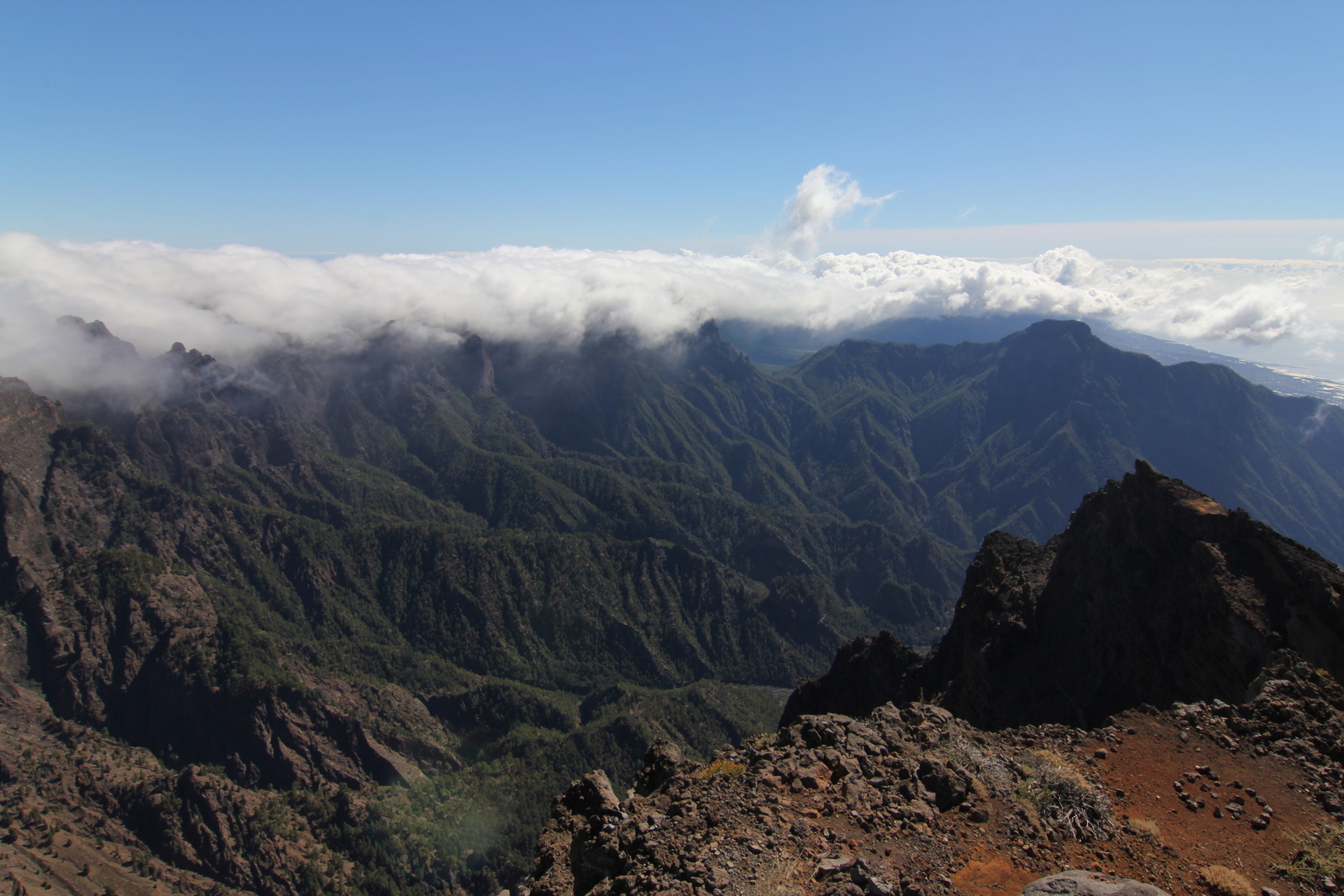 Nach der Tour fahre ich noch die letzten Meter bis zur Aussichtsplatform beim Gipfel des Berges.  Ich kann in die Caldera Taburiente hinabschauen.  Die Aussicht von hier oben ist gigantisch.