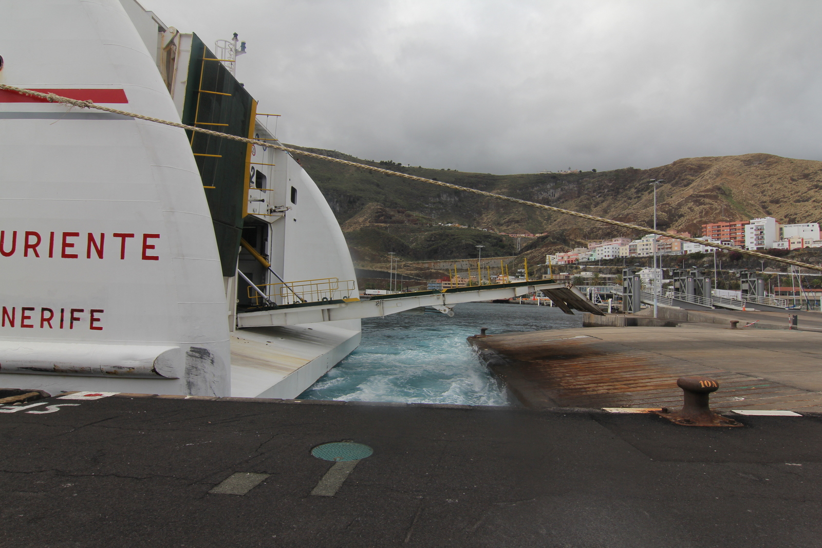 Heute geht es auf die dritte Insel meiner Reise, Gran Canaria. Ich war ja schon kurz dort, als ich mit dem Flugzeug angekommen bin. Heute geht es mit zwei Fähren über drei Inseln. Die erste Fähre fährt von La Palma über La Gomera nach Teneriffa (Los Christianos im Süden). Es ist die selbe Expressfähre, mit der ich auch schon nach La Palma gefahren bin. Der Trikatermaran liegt ganz offensichtlich nicht sehr stabil im Wasser. Schon im Hafen schaukelt er sichtbar. Die Fahrt zurück ist etwas unruhiger, aber wenn man die Augen schließt und sich zurücklehnt, ist es erträglich.