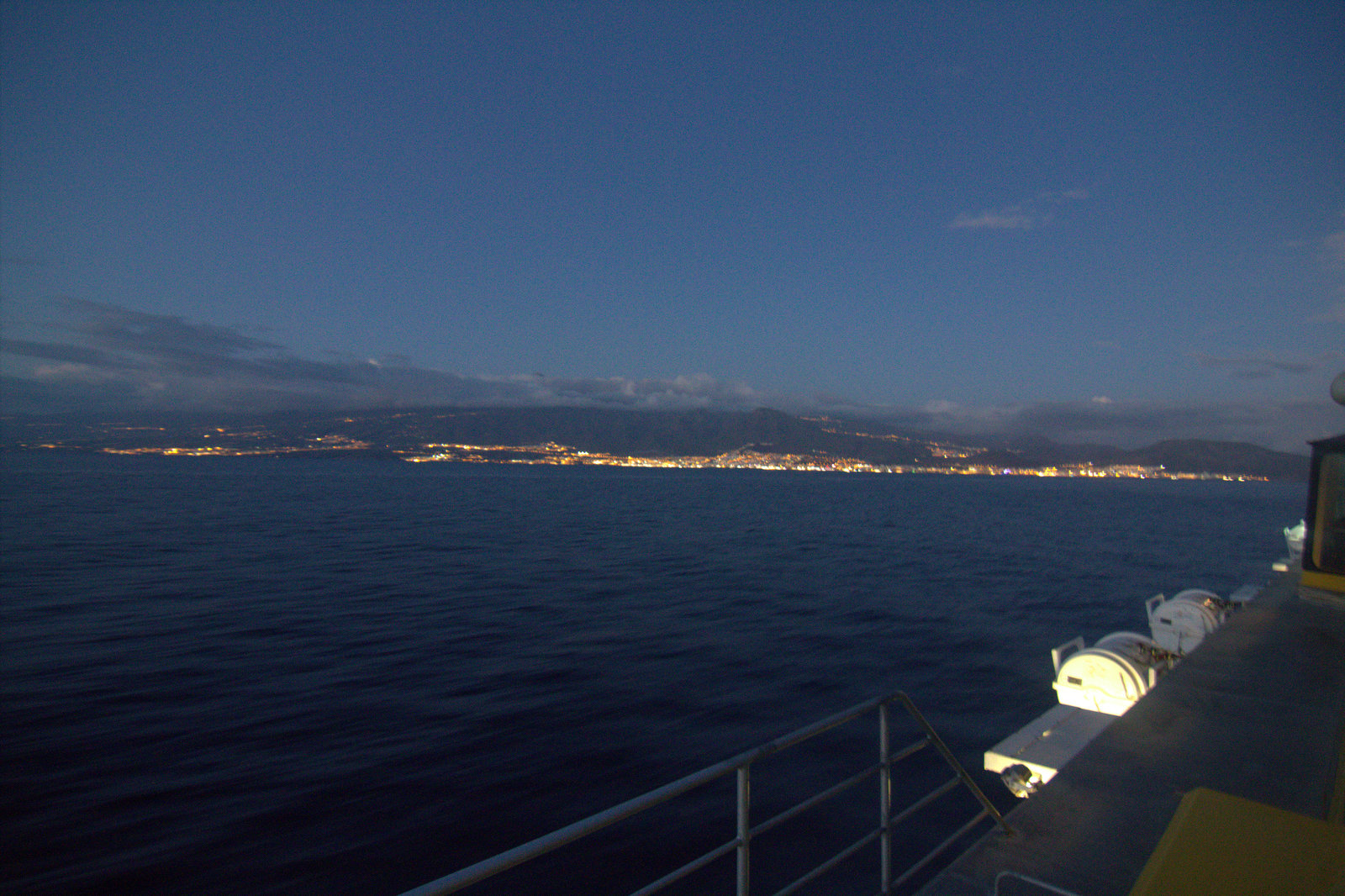 Die zweite Fähre geht von Teneriffa nach Gran Canaria. Dummerweise nimmt sie die kürzeste Strecke. Das heißt, dass sie von Santa Cruz im Norden Teneriffas, nach Aaegete im Westen von Gran Canaria fährt. Auf Teneriffa gibt es glücklicherweise einen Bus der Reederei, der mich von Fähre zu Fähre fährt. Leider hat die Fähre von La Palma eine halbe Stunde Verspätung. Das führt dazu, dass der Bus nicht trödeln darf. Und tatsächlich, er fährt häufig auf der linken Seite der Autobahn um konstant die erlaubten 120 km/h fahren zu können. Denn hier auf Teneriffa fährt, wenn 120 erlaubt sind, ein Drittel 80, ein Drittel 100, und der Rest traut sich gerade so, die 120 zu fahren. Trotz dieses Rennens, muss die Fähre nach Gran Canaria auf uns warten. Als wir ankommen, werden wir schon erwartet. Ein Mitarbeiter der Fähre hilft mir, den Rollkoffer und meinen Rucksack in den Gepäckwagen zu heben und tut selbst den einen Euro in das Schloss. Kaum ist die Klappe zu, wird der Wagen auch schon als letztes Fahrzeug auf die Fähre gefahren, damit sie ablegen kann. Ich werde erst auf dem Autodeck nach meinem Reisepass gefragt, der ist quasi meine Fahrkarte.