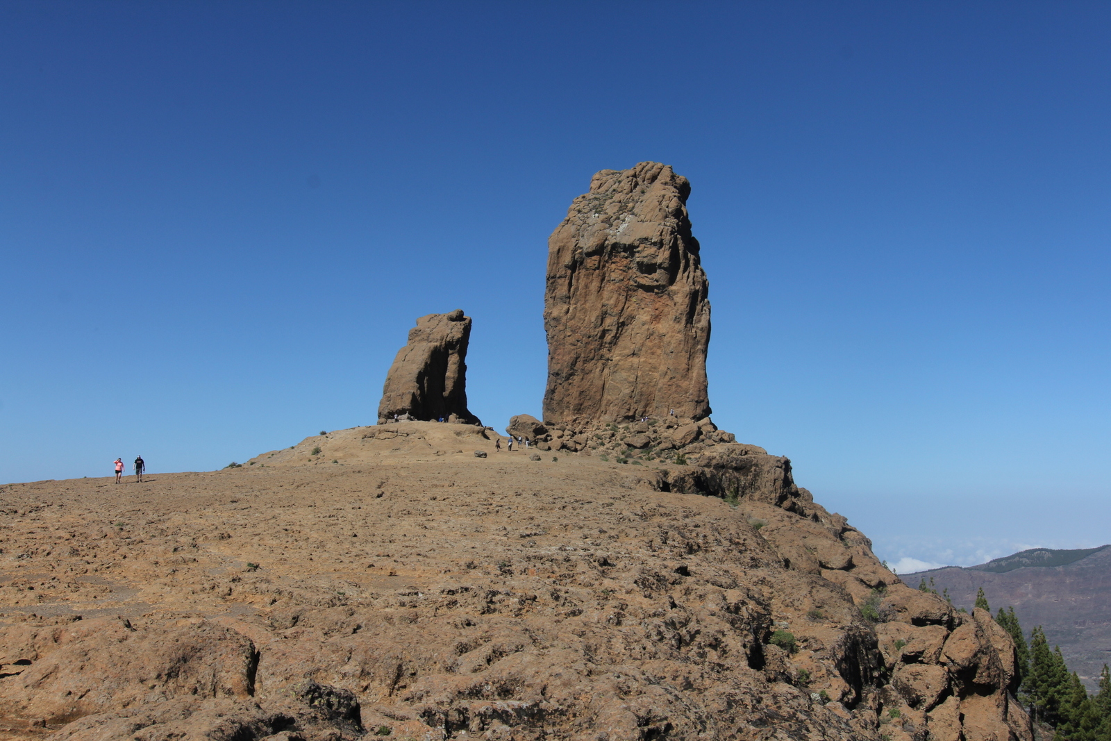 Es geht los in Ayacata. Der schmale Weg geht hier noch zwischen Häuschen durch und an Mandelbäumen vorbei. Auf dem ersten Grat betrete ich dann touristisch erschlossenes Gebiet. Autos so weit das Auge reicht. Auf dem kleinen Parkplatz und dann die Straßenränder rauf und runter. Und die Straßen hier oben im Gebirge sind schon ohne Autos schmal. Ich mache einen Abstecher zum Roque Nublo, dem Ziel der vielen Touristen, zwei Felsen die von einem Berg im Zentrum der Caldera aufragen. Hier kann ich auch sehen wo die Musik herkommt, die ich beim Aufstieg immer mal wieder gehört habe. Da steht ein Mann am Rand eines einen Meter breiten Wanderweges und spielt auf einer E-Gitarre. Untermalt von Musik von seinem IPod. Er spielt gerade The Girl from Ipanema in der Aufzugsversion. Nicht mein Geschmack. Ich mag das Lied, aber nicht diese Interpretation. Zwanzig Minuten später, auf dem Rückweg, ist er bei Yesterday angelangt. Ein Lied, dachte ich, das durch nichts kaputt gemacht werden kann. Aber man lernt ja immer wieder was dazu.