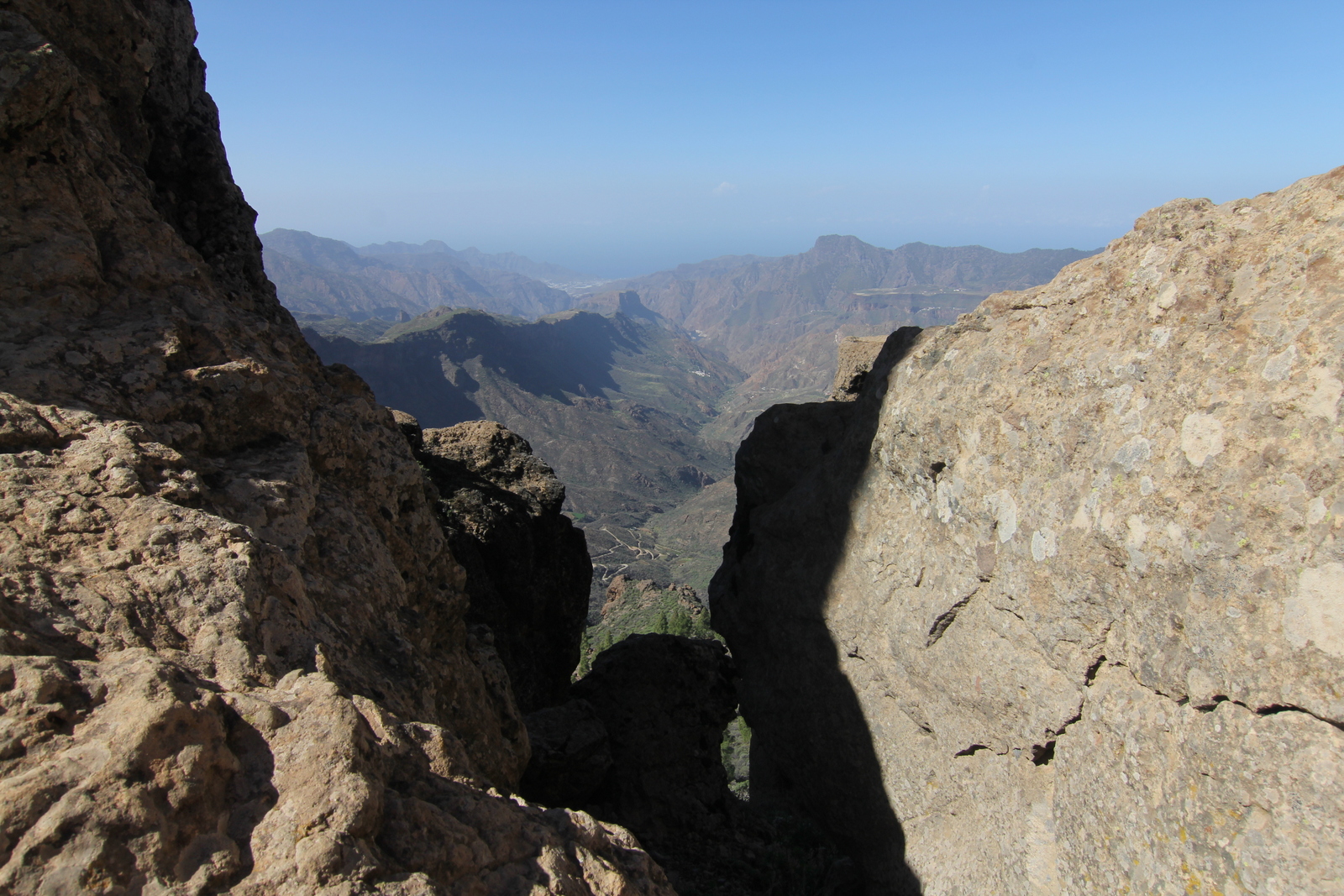 Da der Rundweg mit nicht ganz 10 Kilometern nicht sehr lang ist, mache ich noch einen Abstecher nach ? um einen (diesigen) Blick auf die Nordküste zu bekommen.  Las Palmas kann ich in der Ferne mehr erahnen als sehen.