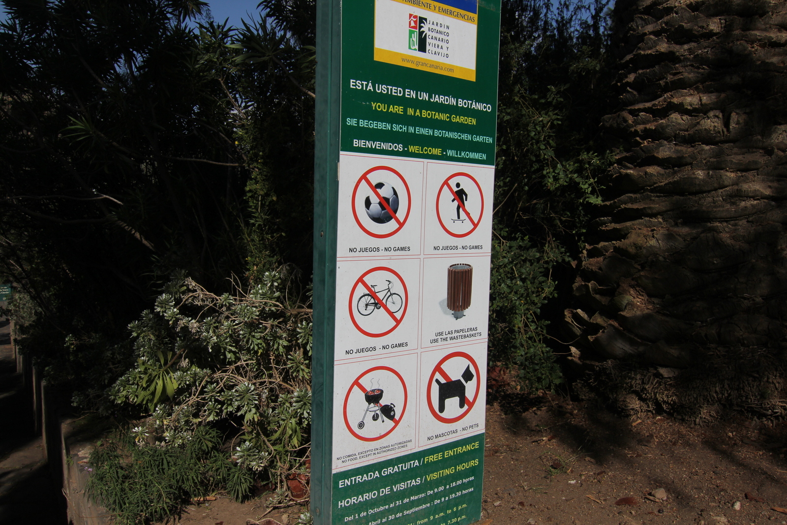 Heute ist (mein) Ruhetag. Um aber nicht den ganzen Tag durch Nichtstun zu verschwenden, besuche ich am Vormittag den nahe gelegenen botanischen Garten.  Angeblich der größte Spaniens.  Aber bestimmt nicht der schönste.  Vielleicht war er das mal, aber heute ist er ungepflegt und unansehnlich.  Kein Vergleich zum Beispiel zu dem liebevoll gepflegten Palmetum auf Teneriffa.