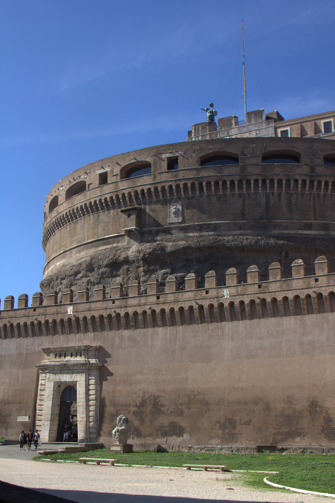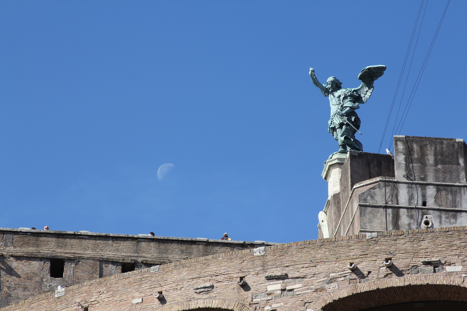 Die Schlange vor dem Petersdom ist mir zu lang. Reicht fast einmal um den Platz. Wartezeit vermutlich mehr als eine Stunde. Also gehe ich zur nahe gelegenen Engelsburg. Hier gibt es keine Schlange. Es gibt mehr zu sehen als ich gedacht hatte. Ich dachte, daß die ehemalige Festung eben nur dieses ist, eine Festung. Ursprünglich war sie aber ein Mausoleum für Kaiser Hadrian. Davon ist leider nur noch wenig übrig. Die Päpste haben es irgendwann im Mittelalter in eine Festung umgebaut und dann noch Gemächer für den Papst hinzugefügt. Der Ausblick auf die Stadt vom Dach der Engelsburg ist prächtig.