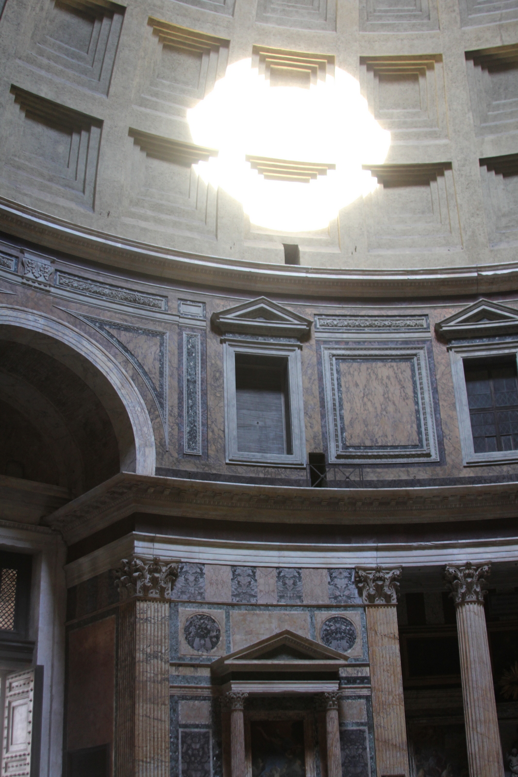 Nachdem ich weiß wo es liegt, gehe ich aber nicht direkt dorthin, sondern schaue erst beim Pantheon vorbei. Ist zwar sehr voll, aber jetzt, am frühen Nachmittag, gibt es keine Warteschlange mehr. Habe ich imposanter in Erinnerung. Vom ursprünglichen Pantheon, in dem die Römer allen Göttern huldigten, nicht nur ihren eigenen, ist leider nicht mehr viel übrig. Die Christen haben das Pantheon vor einer langen Zeit in eine Kirche umgewandelt. Schade.