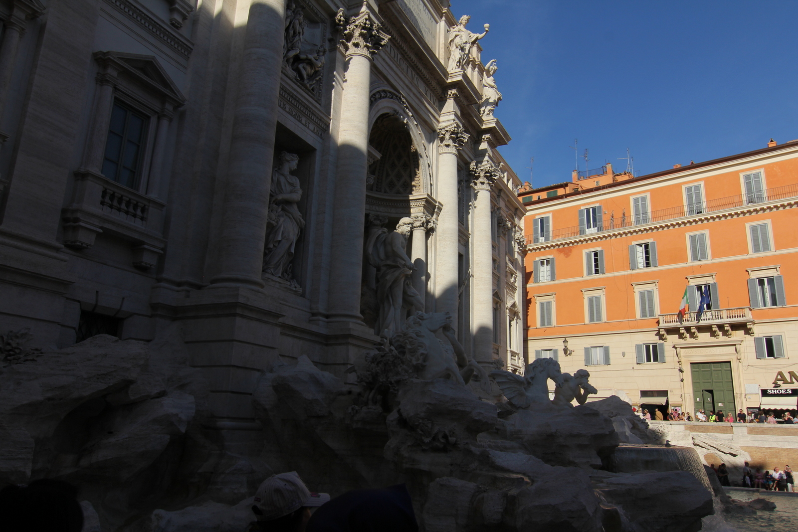 Ich komme noch beim Trevi Brunnen und bin wieder beeindruckt von dessen Größe. Und geschockt von der Menschenmenge, die sich hier durch die engen Straßen schiebt. Wenn Rom die Touristenhauptstadt der Welt ist, dann muß der Trevi Brunnen ihr Epizentrum sein. Pizza wird hier in Rom immer noch (auch) vom Blech verkauft, man kann wählen wieviel man haben möchte, es wird nach Gewicht abgerechnet. Ich kaufe ein Stück vielleicht in dem gleichen Laden wie vor 35 Jahren, pardon, wie vor 15 Jahren.