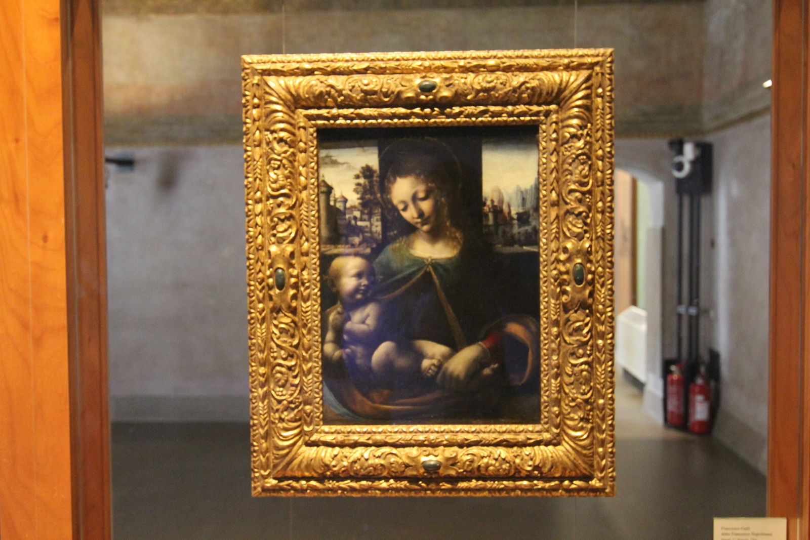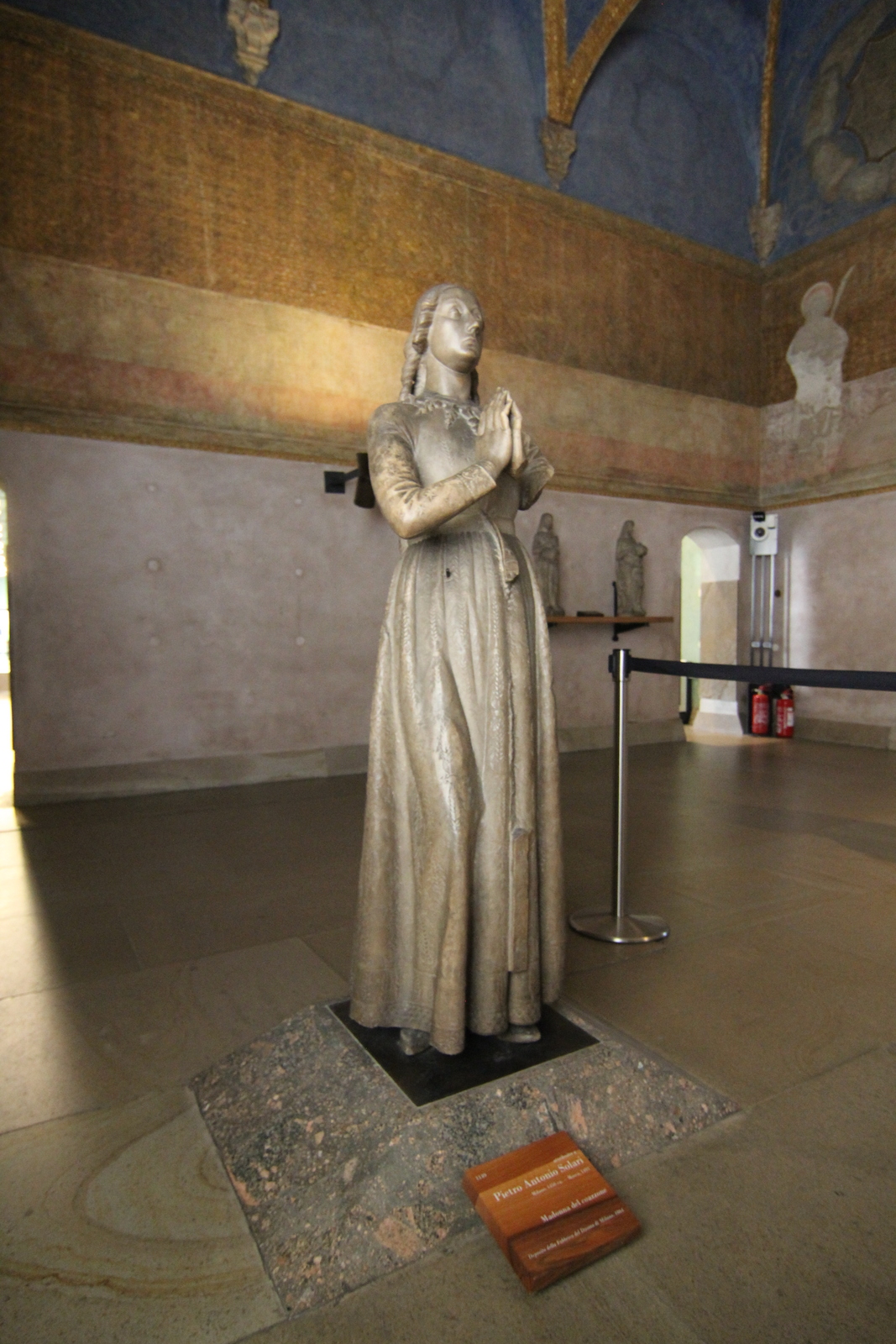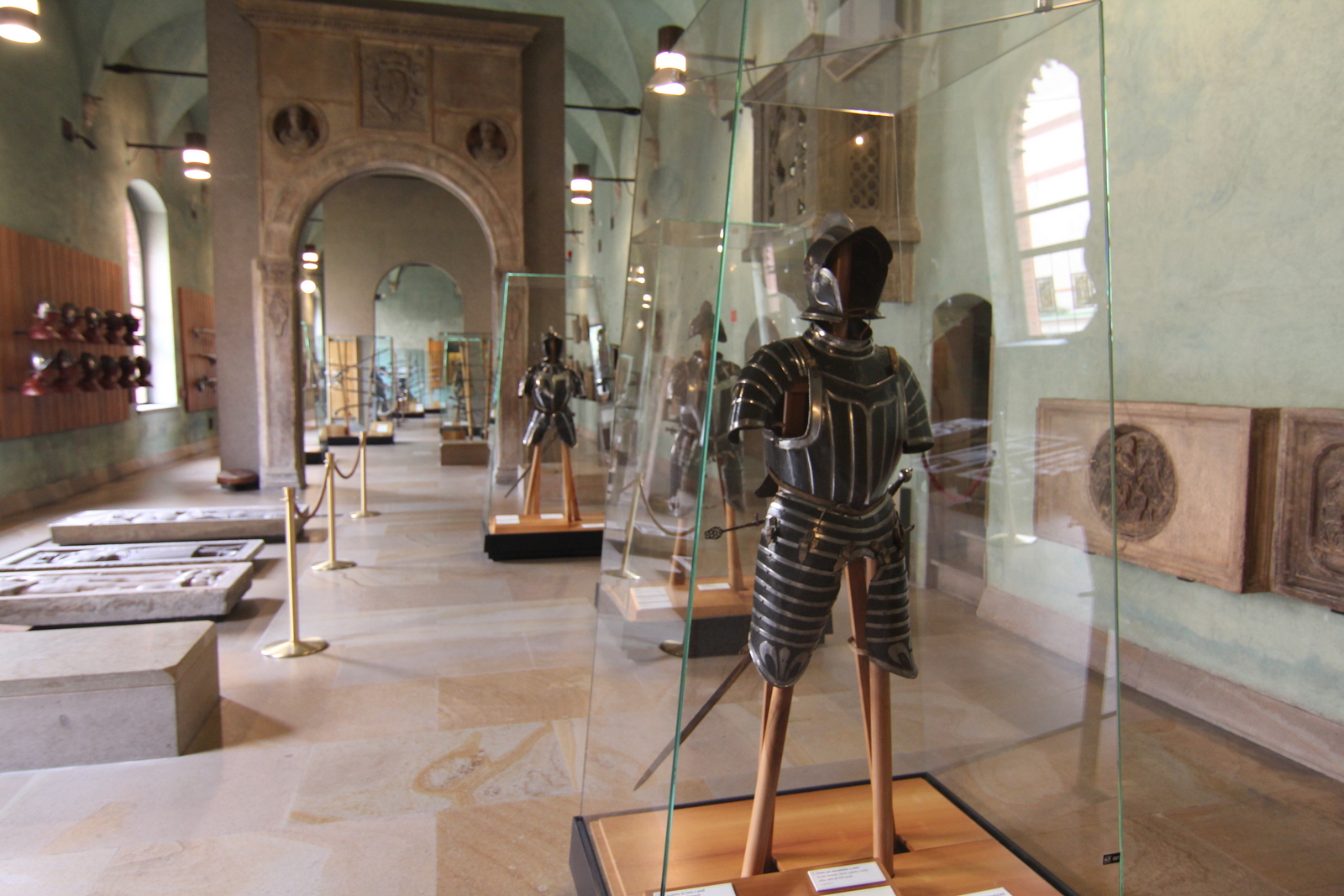 Danach gehe ich „querfeldein“ zur Festung der Stadt. Ich habe mittlerweile etwas Schwierigkeiten, die kleine Schrift der Karte zu lesen. Trotzdem finde ich das Castello Sfozesco. Auf den ersten Blick, und auch auf den zweiten wirkt es größer und wuchtiger als es möglich sein könnte. Vielleicht sind es die Proportionen, oder der Stil oder das es so plötzlich auftaucht, nachdem ich eine Viertelstunde durch kleine Gassen gegangen bin. Vielleicht ist es aber auch einfach sehr groß. Im inneren, sowohl der Innenhof als auch das innere der Gebäude, wirkt es dagegen überhaupt nicht wuchtig sonder ganz im Gegenteil, sehr luftig und leicht (wie eine Schokoriegel). Ich kaufe ein Ticket für all Museen. Zu diesem Zeitpunkt glaube ich noch, das es ein kleines Museum gibt, das ein paar ausgegrabene Steine zeigt und dann vielleicht hier und dort noch ein paar kleine Räume mit Bettpfannen oder Kanonen.