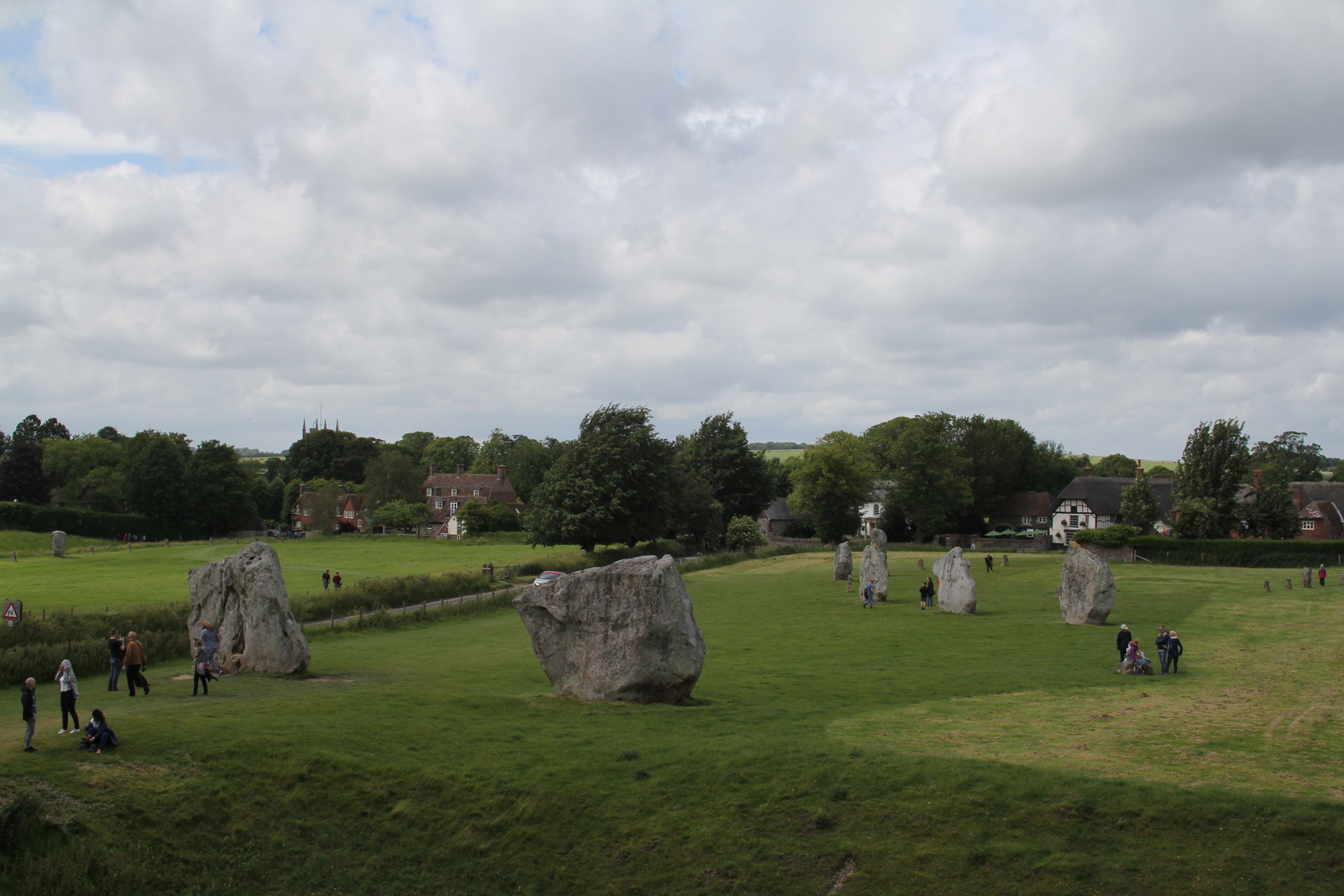Wir machen einen Stop am Steinkreis von Avebury und schauen uns die mehrere tausend Jahre alten Steine an, die von den ursprünglich 72 (?) noch übrig geblieben sind. Was dden Durchmesser angeht, ist dies das größte „Henge“ der Welt. Was wir sehen können ist ein großer Kreisrunder Graben und außen anschließendem Erdwall. Mit einem Durchmesser von vielleicht 200 Metern. Darin in verschachtelten Kreisen ein paar sehr unregelmäßig geformte Steine. Ein paar davon sind vielleicht doppelt so hoch wie ich. Es gibt auch ein paar Shops in alten Häusern und das Wirtshaus „The Red Lion“. Auf den Bänken davor sitzt unter anderen ein wie ein Druide gekleideter Mann der durch eine ähnlich phantasievolle Gefolgschaft komplettiert wird. Ob hier jemand einen Film dreht? Oder üben die schon mal für Mittsommernacht in fünf Tagen?