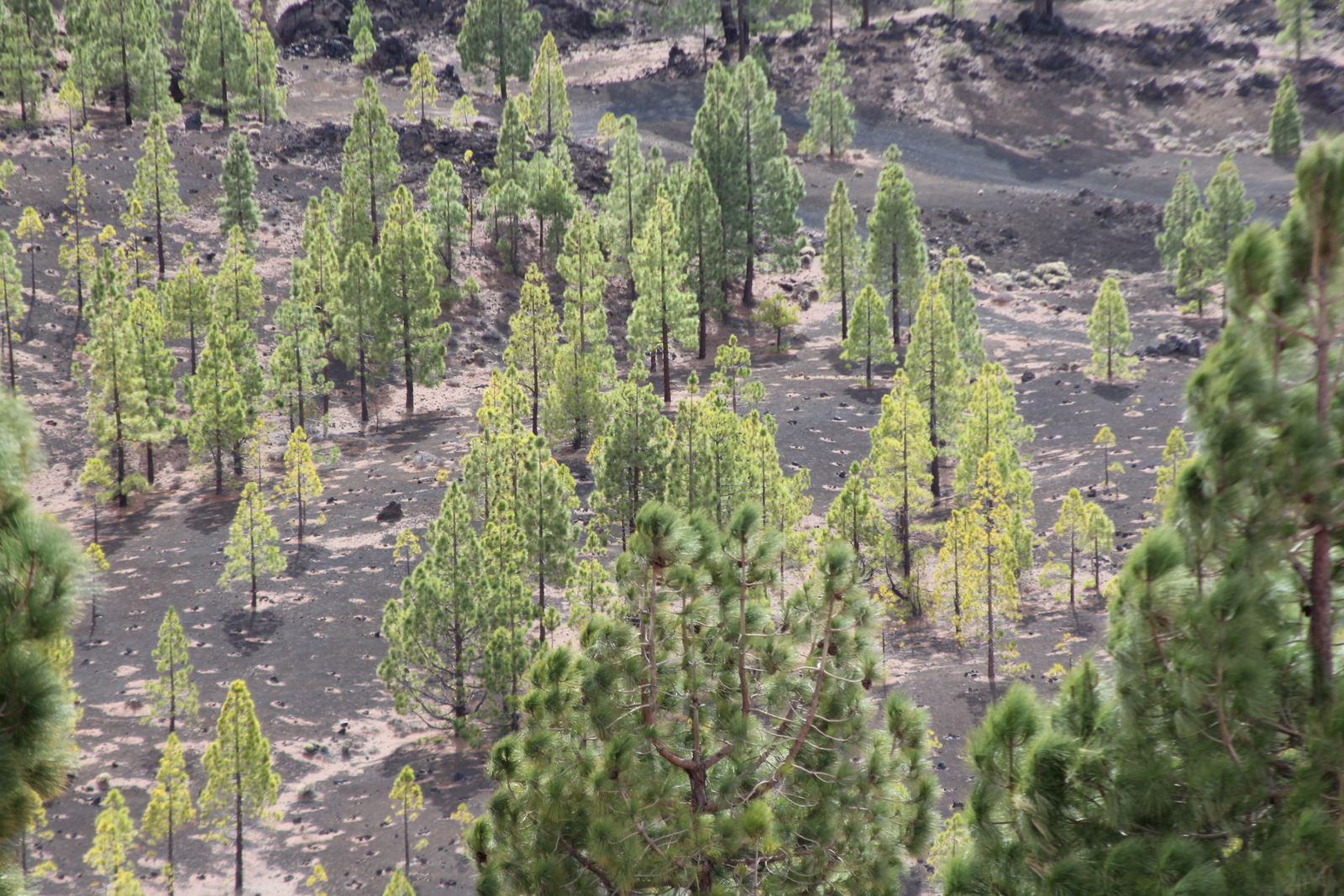 Mein Tag beginnt so wie gestern. In Serpentinen den Berg hinauf. Ab Vilaflor geht es durch den hübschen Kiefernwald. Beim Eingang in die Caldera des Teide, die Las Canadas, mache ich eine kurze Wanderung auf ein altes Lavafeld. Der Bimssteinschotter (ist das wirklich ein Wort?) ist gleichzeitig griffig (wegen des Bimssteins) und rutschig (wegen des Schotters). Ich habe aber nicht viel Zeit, weil ich um 12 Uhr auf der anderen Seite des Tales sein muss.