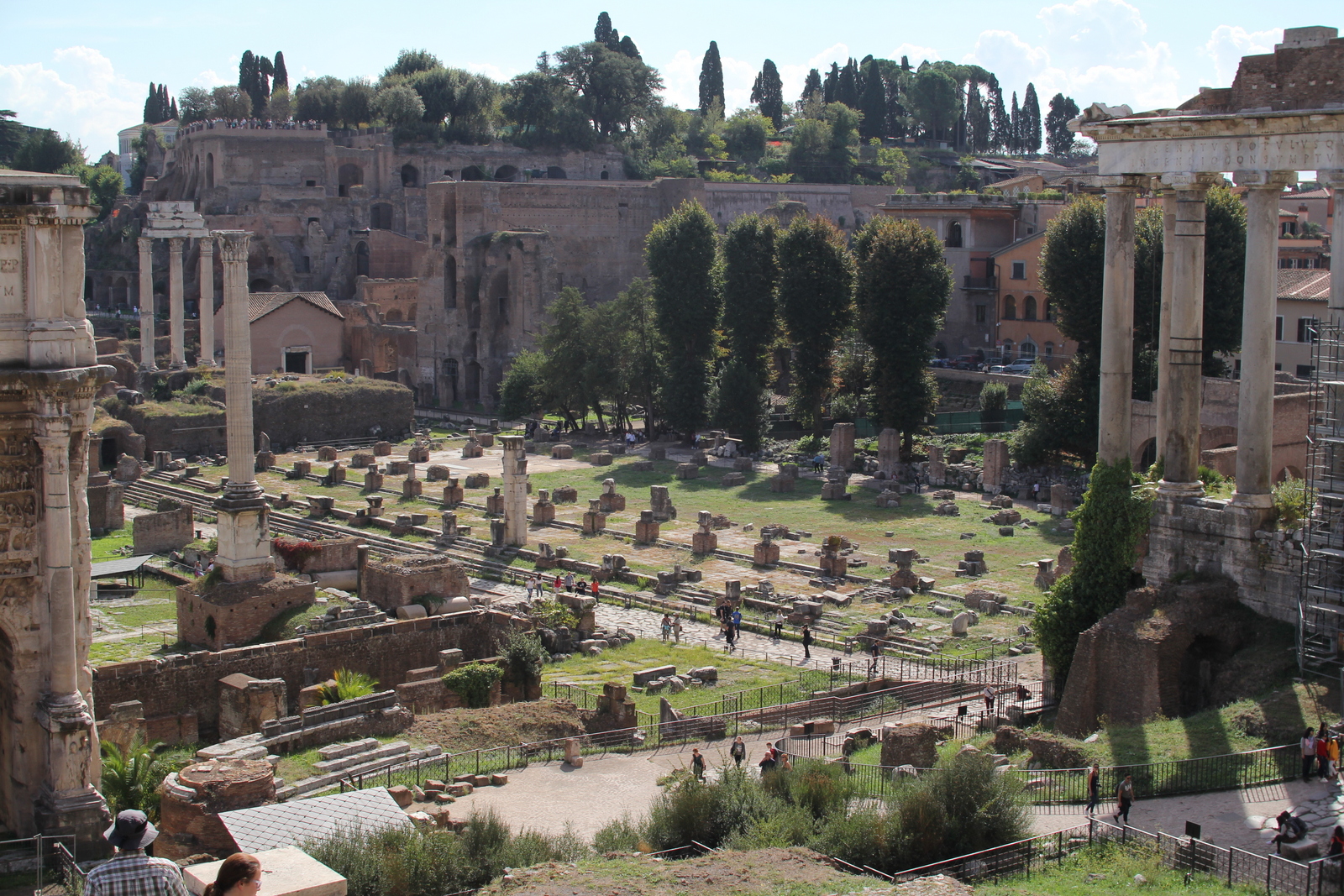 Ich habe aber einen tollen Ausblick auf das Forum Romanum. Besser vermultich als von seinem Inneren, für dessen Betreten man bezahlen und, schlimmer, anstehen muß.