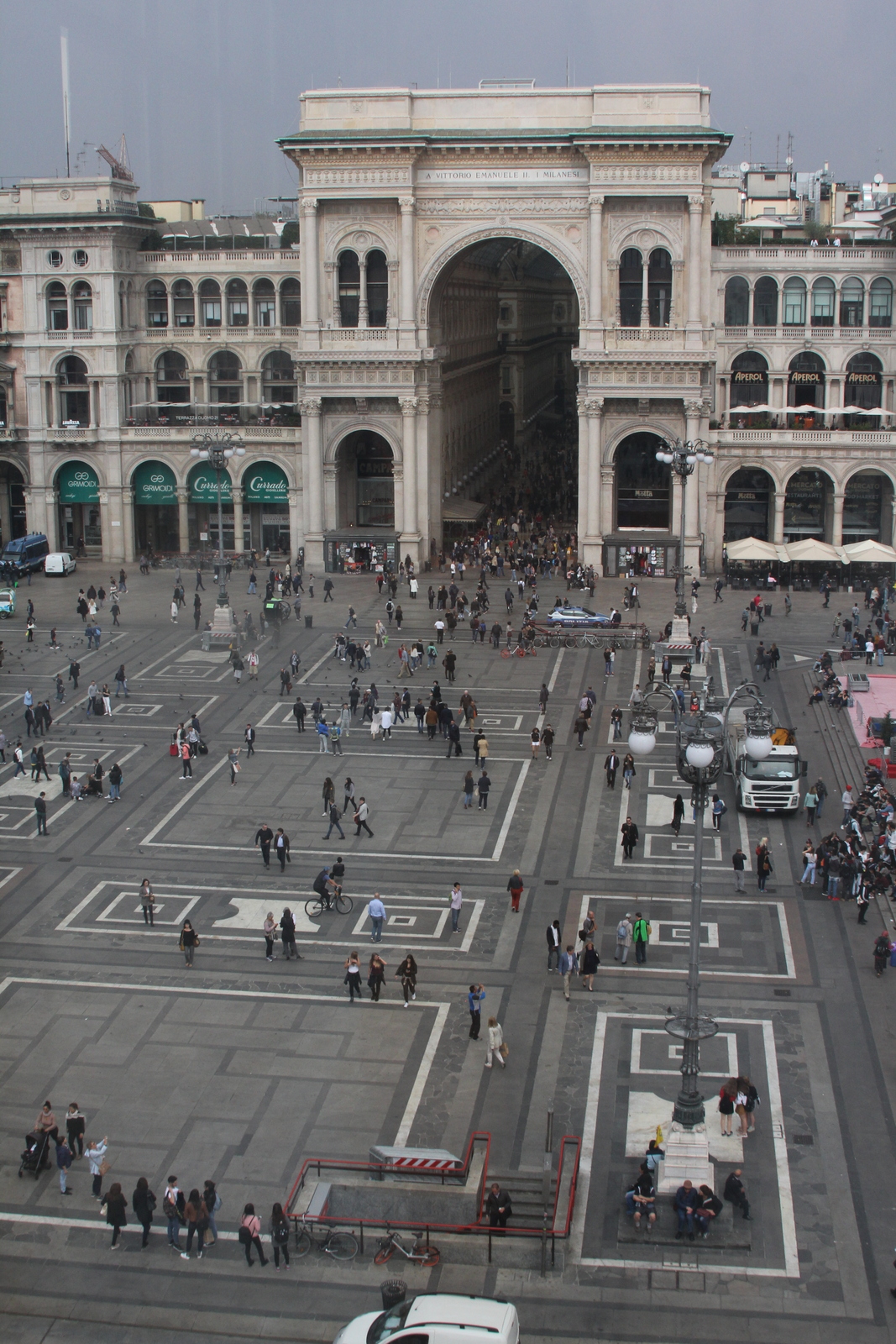 Im obersten Stockwerk gibt es tolle Ausblicke auf die Stadt, inklusive Dom und die „Shopping-Mall“ gegenüber am Domplatz. Die Galleria Vittorio Emanuele aus dem 19. Jahrhundert, ist größer und prächtiger als jedes Einkaufszentrum das ich kenne. Schöne Mosaiken auf dem Boden, tolle Kuppeln bilden das Dach. Auf der anderen Seite finde ich die Mailänder Scala, die berühmte Oper der Stadt. Ein kurzer Rundgang zeigt, daß sie kleiner ist als erwartet und richtig alt wirkt. Vielleicht weil sie alt ist und immer noch als Oper genutzt wird und nicht nur eine Museum ist.