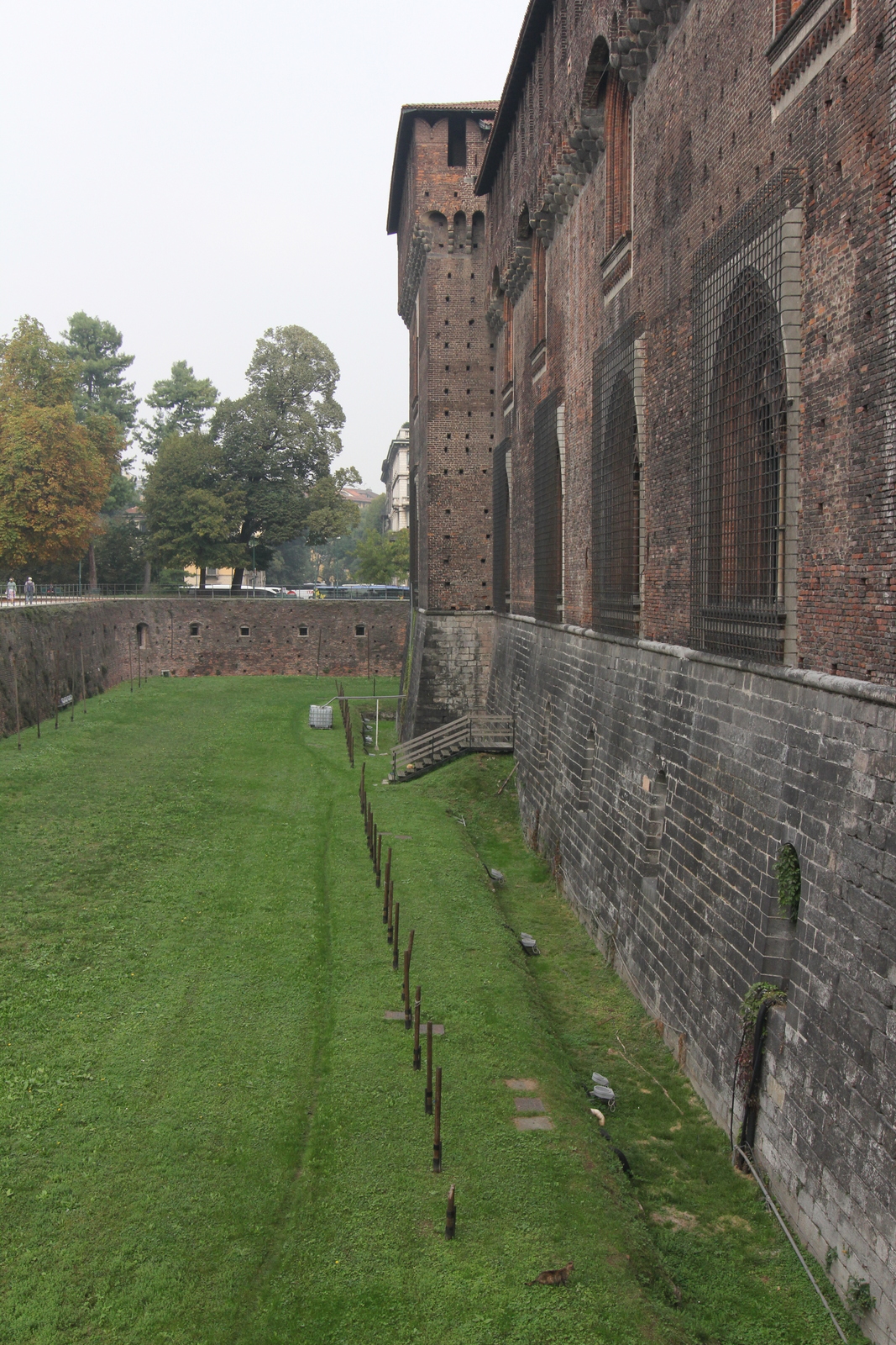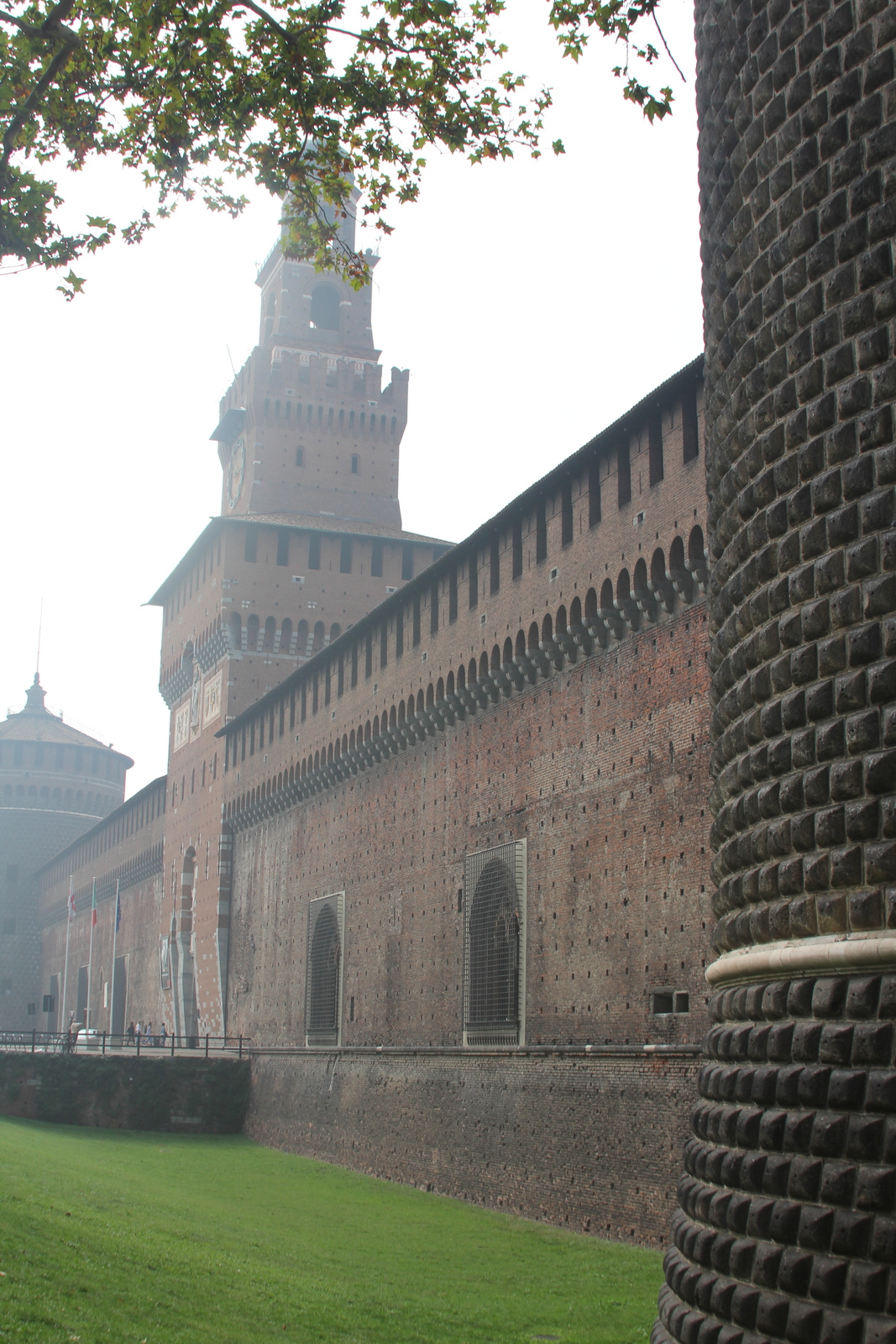 Danach gehe ich „querfeldein“ zur Festung der Stadt. Ich habe mittlerweile etwas Schwierigkeiten, die kleine Schrift der Karte zu lesen. Trotzdem finde ich das Castello Sfozesco. Auf den ersten Blick, und auch auf den zweiten wirkt es größer und wuchtiger als es möglich sein könnte. Vielleicht sind es die Proportionen, oder der Stil oder das es so plötzlich auftaucht, nachdem ich eine Viertelstunde durch kleine Gassen gegangen bin. Vielleicht ist es aber auch einfach sehr groß. Im inneren, sowohl der Innenhof als auch das innere der Gebäude, wirkt es dagegen überhaupt nicht wuchtig sonder ganz im Gegenteil, sehr luftig und leicht (wie eine Schokoriegel). Ich kaufe ein Ticket für all Museen. Zu diesem Zeitpunkt glaube ich noch, das es ein kleines Museum gibt, das ein paar ausgegrabene Steine zeigt und dann vielleicht hier und dort noch ein paar kleine Räume mit Bettpfannen oder Kanonen.