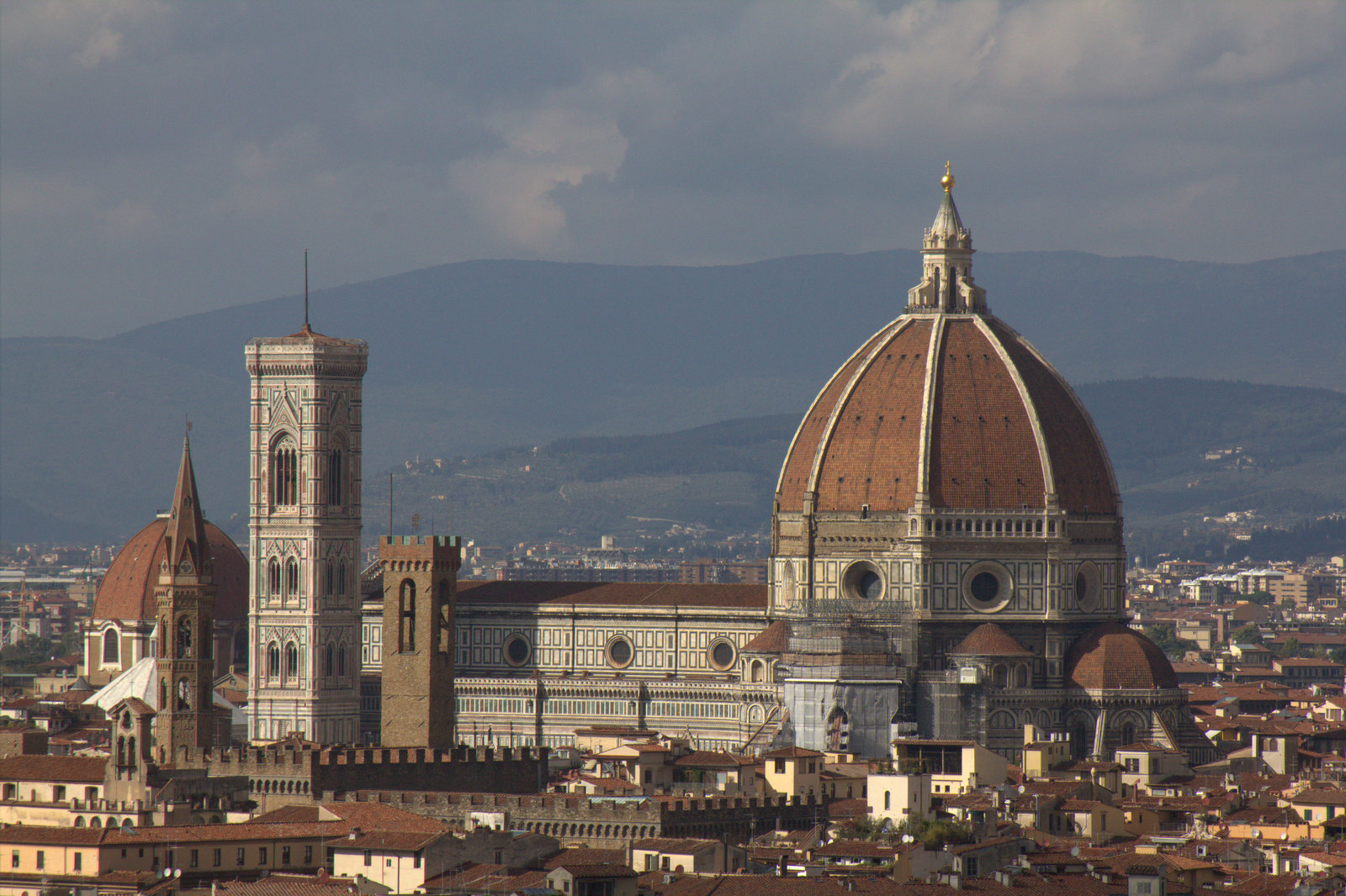 Ich gehe über die Ponte Vecchio auf die andere Seite des Arno. Über ein steiles Sträßchen geht es zum Piazzale Michelangelo, einem Platz von dem ich einen wunderbaren Blick über die Stadt habe. Ich warte ein wenig bis die Sonne hinter den Wolken hervorkommt und den Dom beleuchtet.