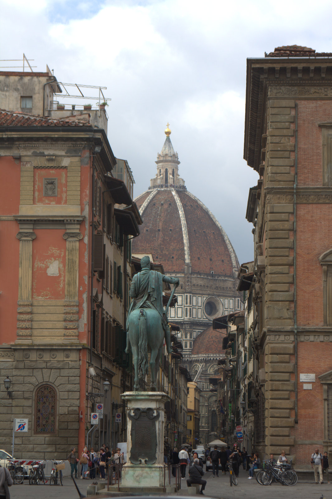 Es geht weiter zu meinem nächsten Stop in Italien, nach Florenz.  Der Zug fährt pünktlich ab und saust mit manchmal 300 km/h in Richtung Süden. Er ist dann ein wenig lauter als sein deutsches Gegenstück, aber die Federung ist etwas härter, und damit angenehmer. Nicht dieses weiche Schaukeln, wie auf einem Schiff, bei dem ich fast Seekrank werde. Nach weniger als zwei Stunden erreiche ich mein Ziel und bin um 12 Uhr im Bahnhof von Florenz.