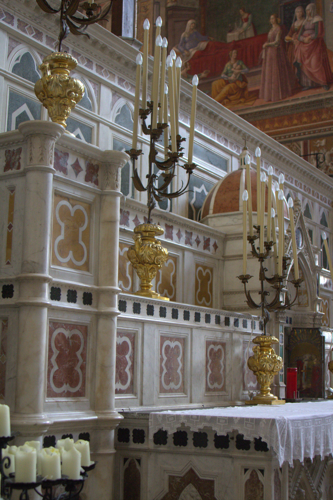 Bevor ich meine Exkursion nach Siena starte, besuche ich die Kirche Santa Maria Novella, die auch dem nahen Bahnhof den Namen gibt (Florenz SMN). Eine der hübscheren Kirchen der Stadt. Heute morgen mit tollen Projektionen der Glasfenster. Die anliegenden Kreuzgänge (es gibt zwei oder drei große Innenhöfe) sind alle aufwendig mit Fresken geschmückt. Auch die kleineren Kapellen sind lückenlos mit Fresken ausgekleidet. Es war mir ja klar, daß hier im Epizentrum der Renaissance, besonders viele und wegweisende Kunstwerke zu finden sind. Und trotzdem bin ich immer noch erstaunt, daß man hier im Grunde jeder Wand in jeder Kapelle in jeder Kirche ein kleines Museum widmen könnte.